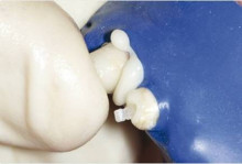 核材料完全固化后,去掉核成型罩,修整冠核形态,纤维桩核既制备完成。
