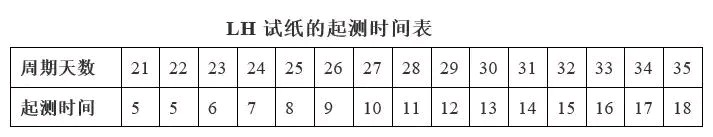 起测时间:先确定上次月经周期的天数,然后按下表推算本次开始测试的时间。例如:如果测试者上次月经周期的天数为26天,则先在表中的上栏先找到自己上次月经周期的天数26,对应的下栏可找到数字9,以月经开始来潮的当天作为第一天,就在本次月经来潮的第9天开始测定。如果月经周期为28天,则就在本次月经开始来潮的第11天开始测定,以此类推。