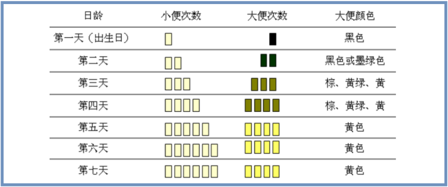 ① 新生儿生后1~2天,胎便为“墨绿色”;新生儿生后3~5天,大便逐步转为“黄绿色”;新生儿生后1~2周后,大便逐步转为“金黄色”;新生儿后期与婴幼儿时期,大便颜色主要是“金黄色” !