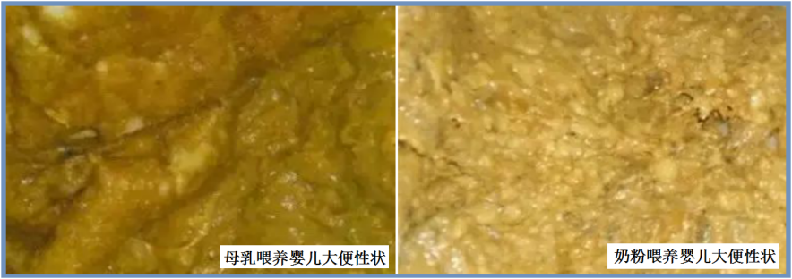 ② 母乳喂养的孩子,大便颜色可能 黄色or绿色or黄绿色,一方面因为母乳喂养孩子的大便排得快,带着胆汁的颜色就出来了,另一方面因为母乳喂养孩子的肠道酸性环境与肠道菌群,能氧化胆红素变成 胆绿素(绿色),因此母乳喂养孩子的大便颜色较深(黄绿色)。