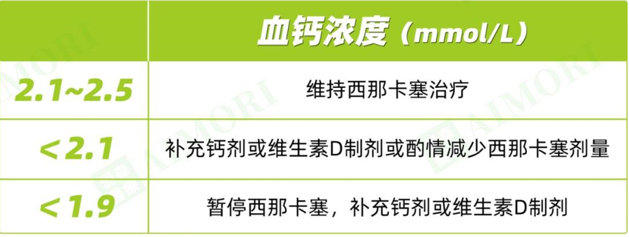 还会产生低钙的副作用,在使用西那卡塞时,应注意监测血钙水平;所以,肾友血钙水平偏低时,应先使用钙片或维生素D制剂调整血钙水平至正常。