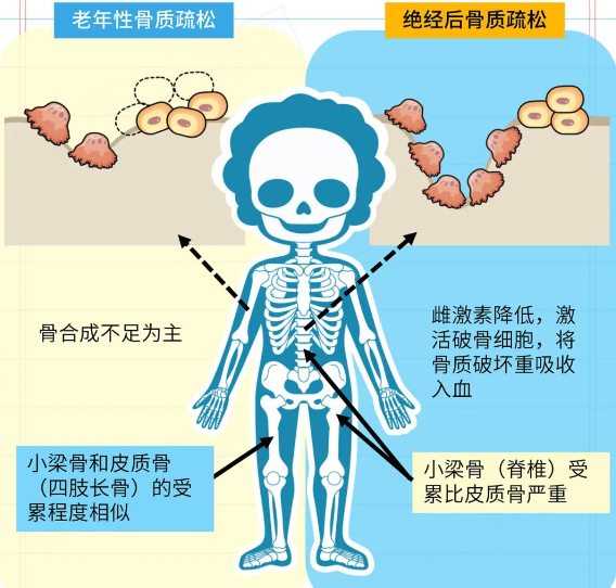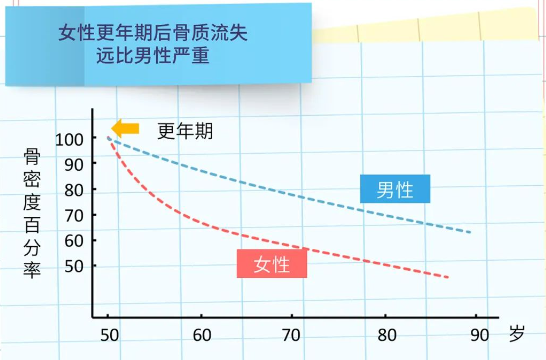 2、流行病学:成年女性的骨量在35岁左右达到峰值,更年期前平均每年流失约2%的骨质。然而到了更年期(从末次月经前约2年开始,持续数年),女性髋部和脊柱的骨质流失骤然升高至每年10~12%。更年期越早的女性,骨密度降低的速度越快,实际上,最后一次月经周期的时间比实际年龄更能预测女性骨密度的变化。