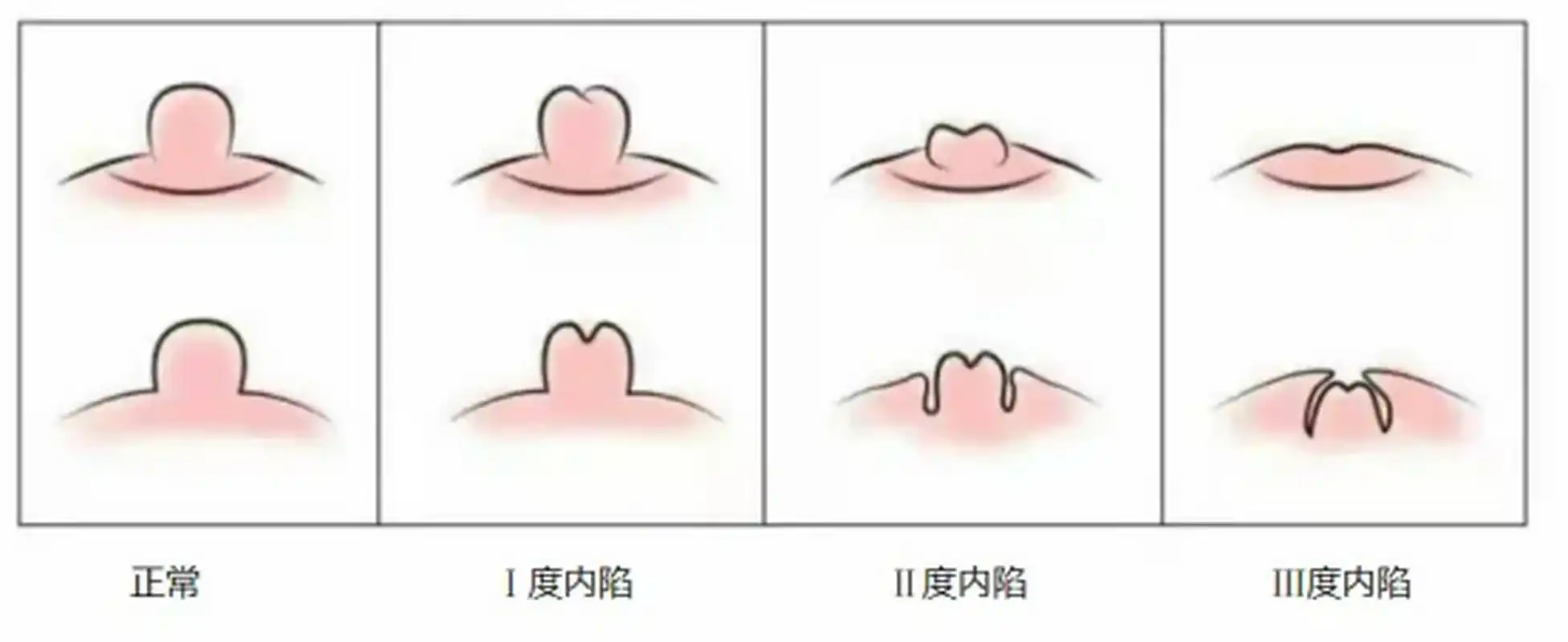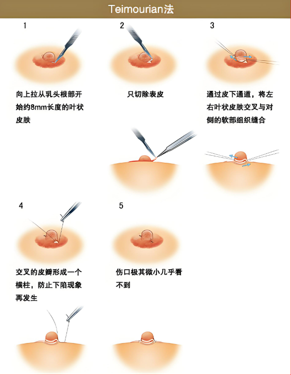 (3)、对于重度乳头内陷,在保守治疗效果不佳情况,谨慎评估手术治疗的必要性