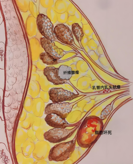 乳头状瘤:导管内乳头状瘤(单发或多发),常伴乳头溢液(血性或清亮)。
