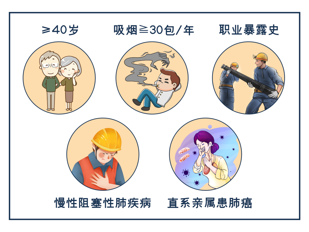 ◎ 有职业暴露史(石棉、氡、镉、镍、煤烟等)至少一年;