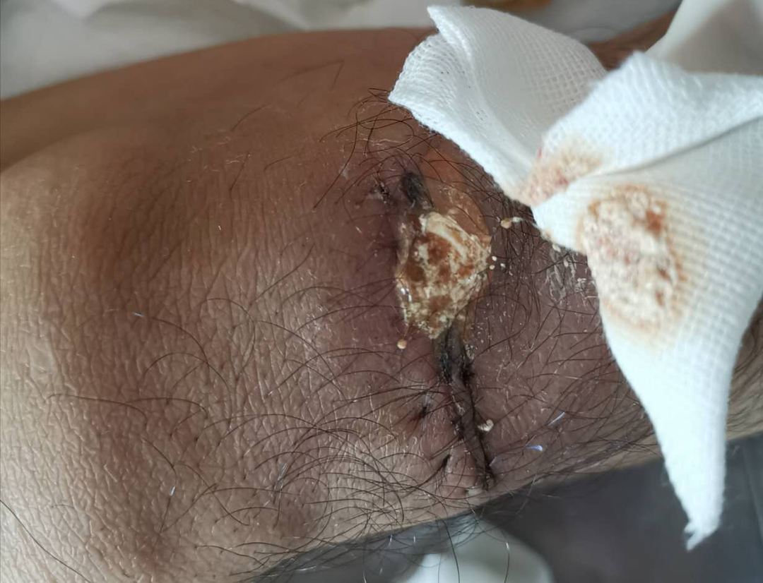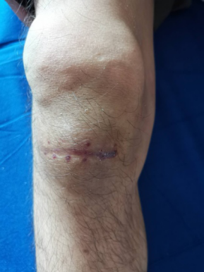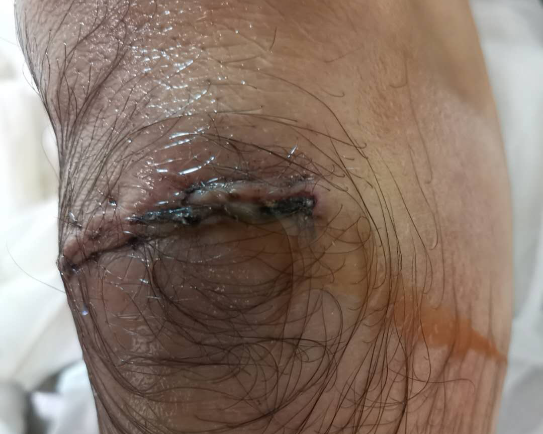 经过全身多处包块切除手术后,患者大部分痛风石得到清理,因患者右膝关节腔包块切除术后,关节腔与外界组织相通,少量关节液反复流出,经医护人员后期专业的治疗与精心护理,关节伤口愈合,关节功能恢复良好,顺利出院。