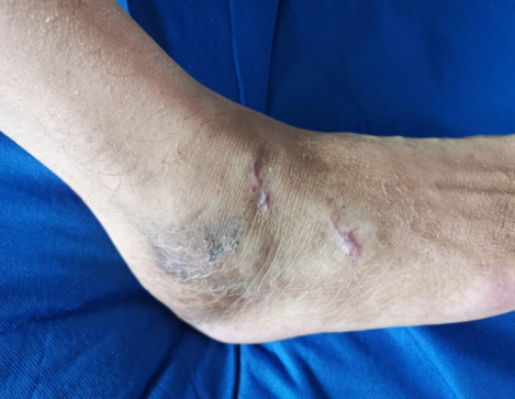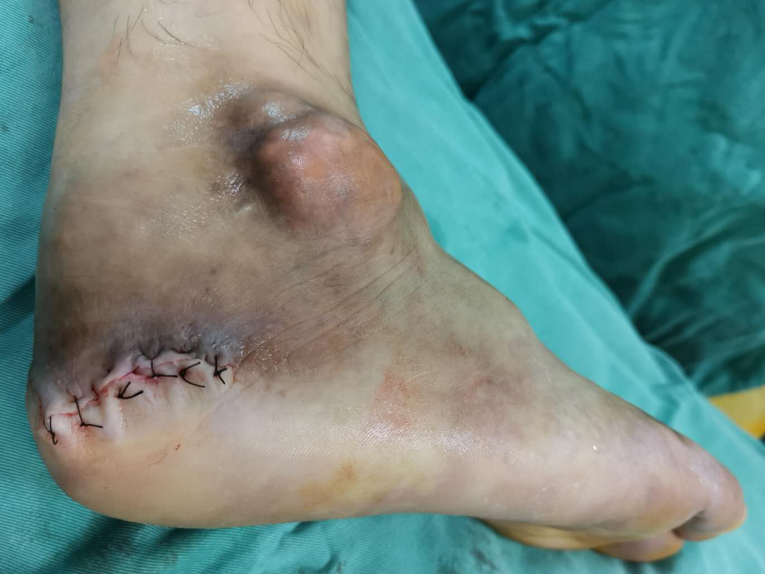经短暂住院抗感染等对症治疗后,患者右足跟外侧伤口愈合良好,顺利出院。