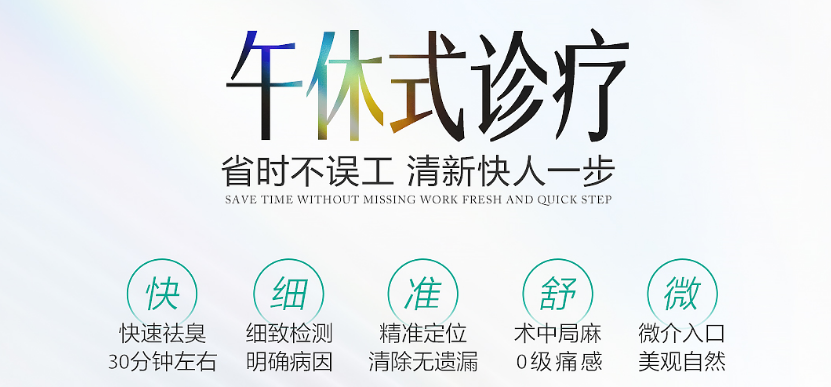 有些患者因为担心腋臭手术治疗时间长、恢复时间长就拖延治疗,实际上这是很多人都有的一个误区,我院【午休式诊疗模式】就能很好地解决这一点: