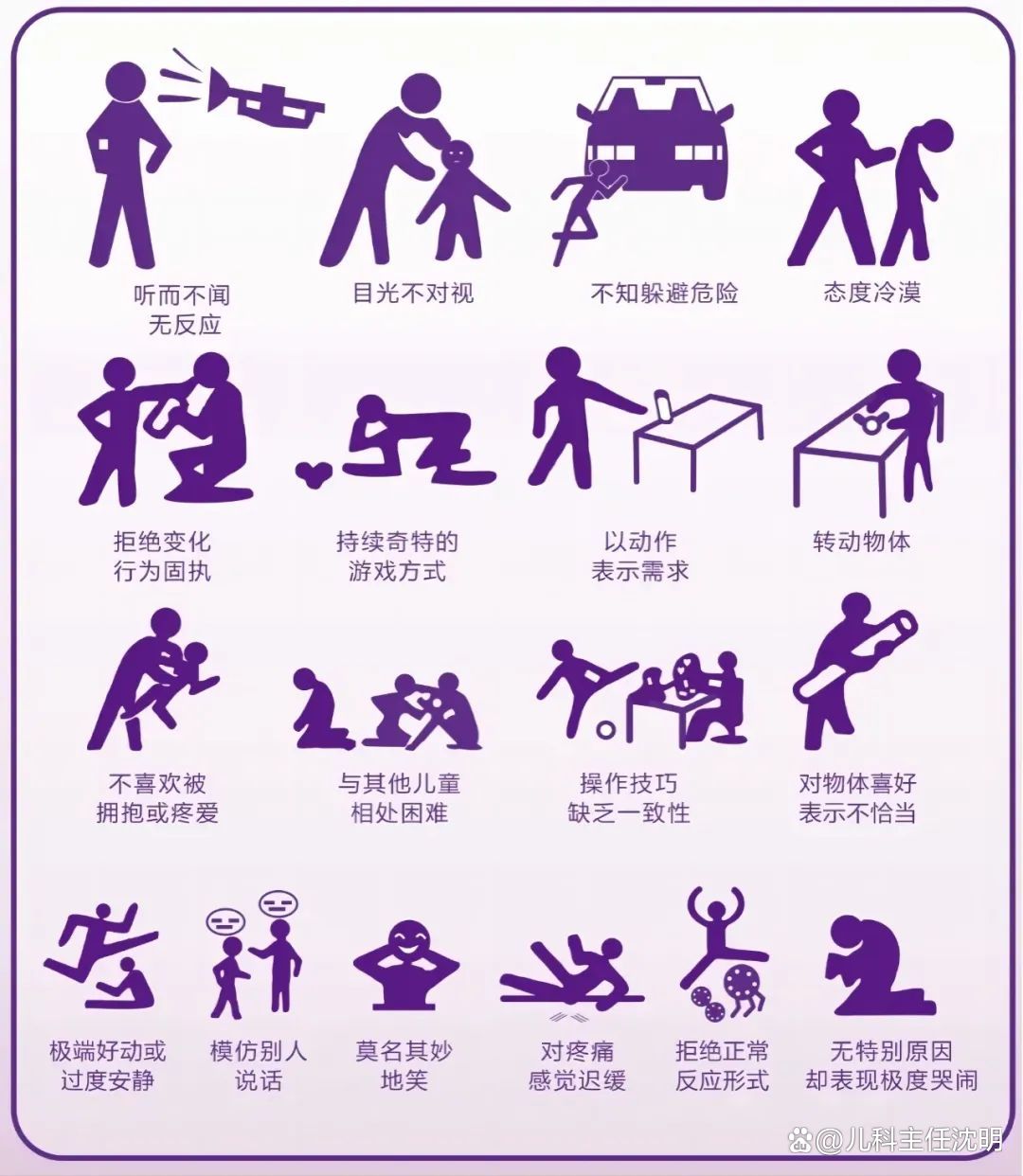 家长如果发现小孩有下图类似的症状,可以告知医生,以达到早期发现和干预的目的。