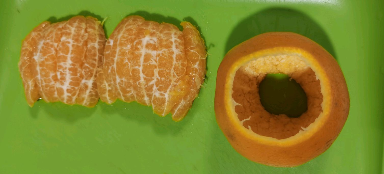 我们可以看到刚才切过的橘子还能剥出这么多肉。