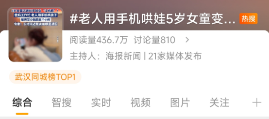 近日,一则新闻——“老人用手机哄娃5岁女童变‘斗鸡眼’”引发广泛关注。