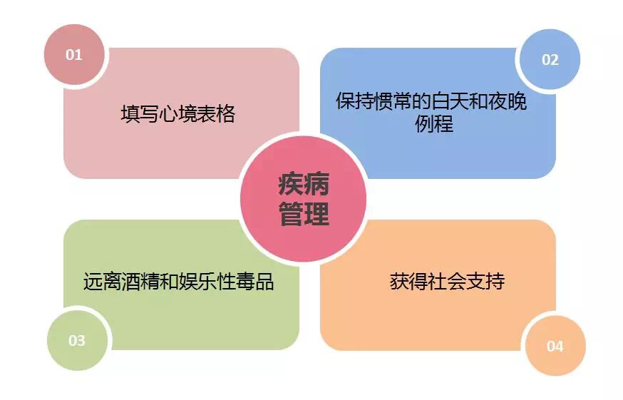 双相障碍患者需要与核心圈子中的成员建立相互支持的关系,参加简单而有节制的社交生活,才能最好地预防陷入不良的情绪。