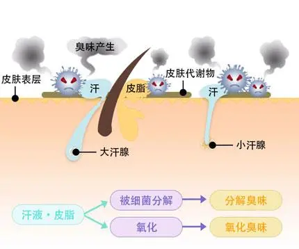 随着空气中的温度升高,人体毛孔处于张开状态,毛孔散热是维持人体核心温度的有效手段之一,尤其到了夏天,因天气炎热难以避免会有出汗、排汗的现象发生,这就会加重异味的产生,且比其他季节更为浓烈,这种异味就是—腋臭。