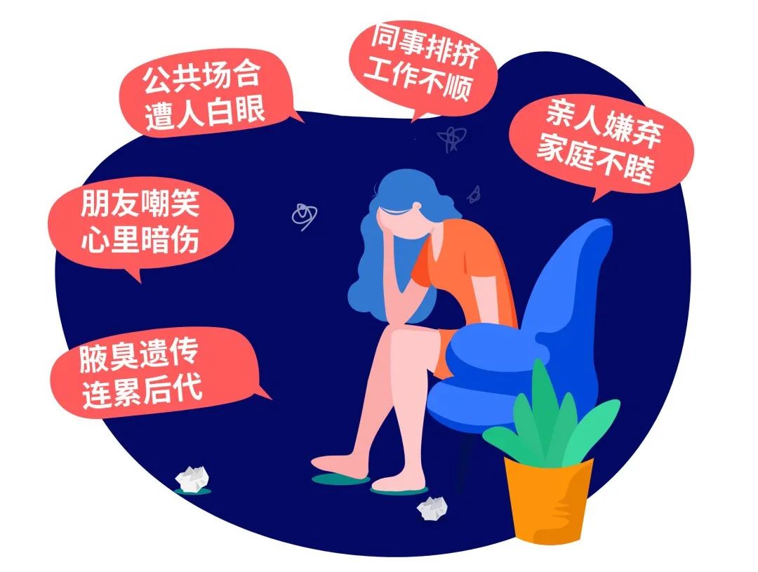 腋臭虽然不是什么洪水猛兽,却是社交“大敌”,对于有这种特殊体味的人群来说,常常成为他们的心理负担,严重影响交友、就业、甚至婚姻,久而久之,极易产生自卑等心理疾病。