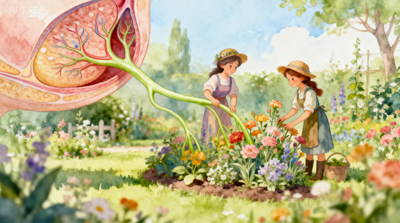 雌激素园丁轻柔唤醒“乳腺导管”这些花茎:“来,慢慢伸展,我们要为可能的哺乳任务做准备啦!