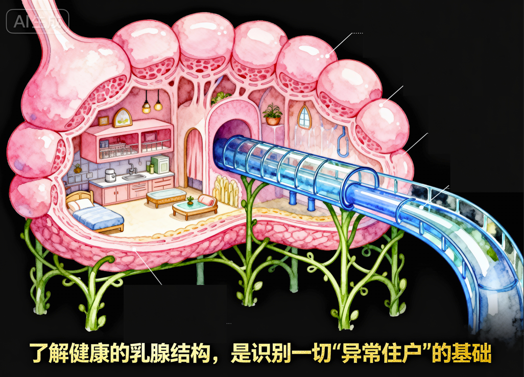 这个系统在激素的调控下周期性地工作,偶尔会出现一些“计划外”的建筑或住户,它们就是我们常说的乳腺结节。