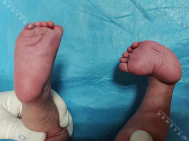 前期联系安排下,足踝外科王雁智医生在高速路口接到小益西一家立即前往医院进行检查治疗。经过检查,小益西确诊为:左足先天性马蹄内翻足。