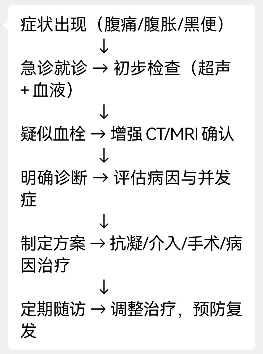 总结:门静脉血栓的诊治需要“快、准、稳”——快速识别、精准诊断、稳定抗凝。患者需积极配合医生,坚持长期管理,才能最大程度保护肝脏和肠道功能,避免严重并发症。