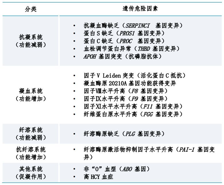 ①VTE遗传风险评估可鉴别先天易栓体质,划分遗传高风险人群;