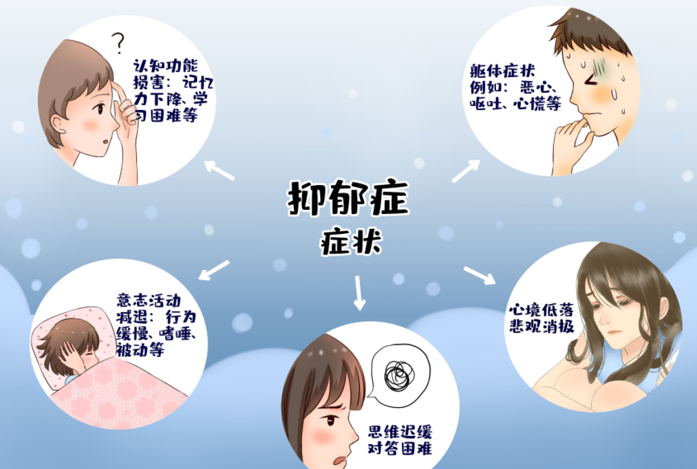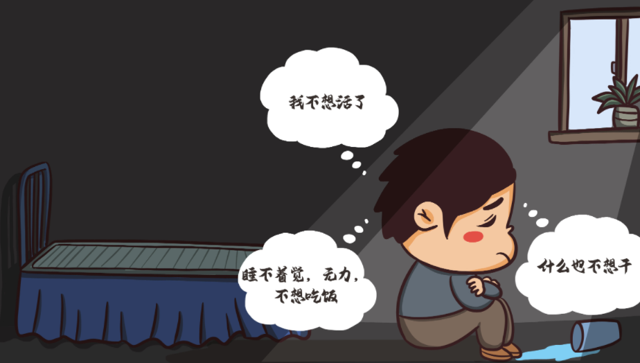 典型抑郁症症状有三:情绪抑郁,言语减少,行动缓慢。