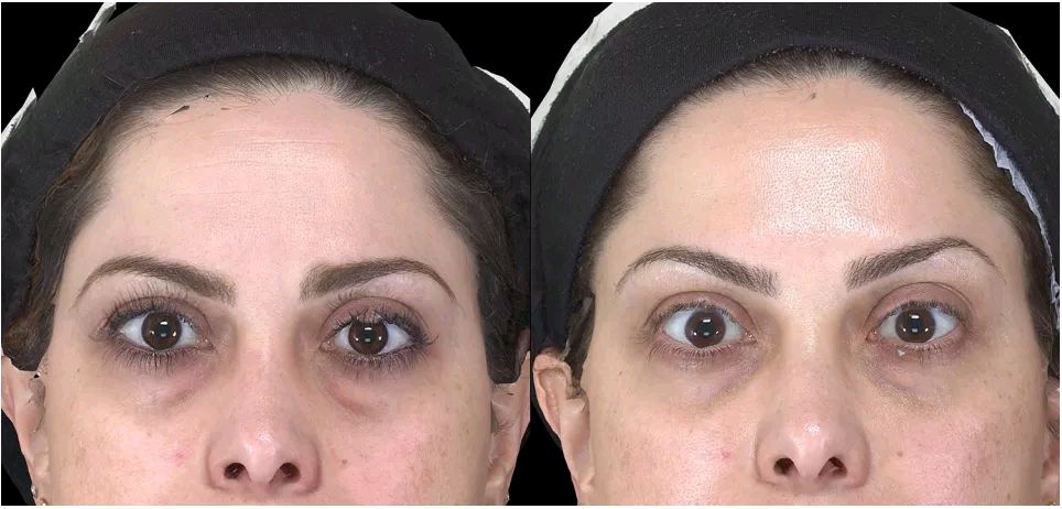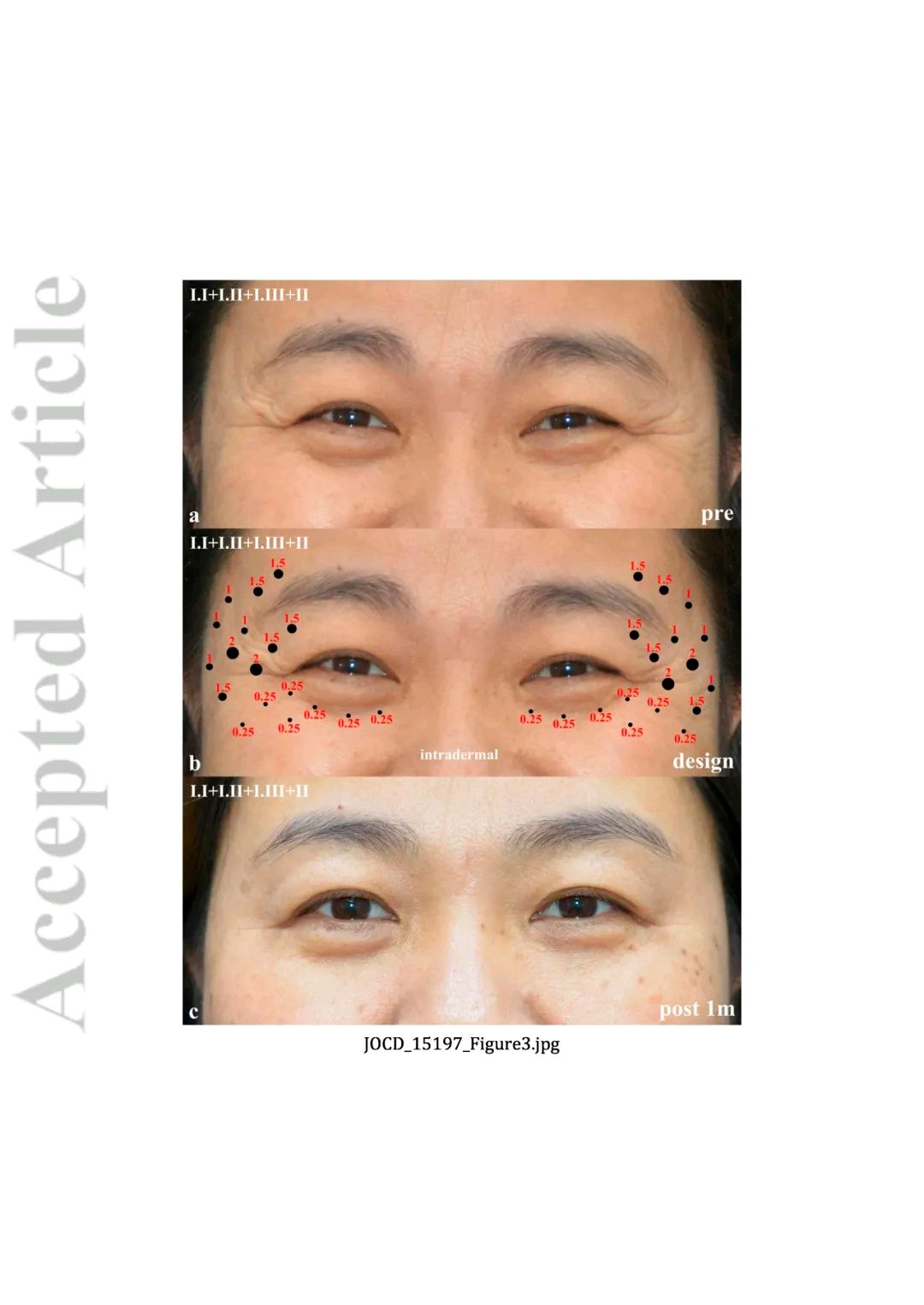 1,尽量均匀注射,除了上眼睑,因为会引起上眼睑下垂。眼部外侧,下方,内侧均匀分布。只是药物剂量有差别。上面这个病例,每侧注射17.25单位,还是挺多的。但没有出现不自然,卧蚕消失,局部肌肉过度代偿等。而且眼睛也似乎变大了。