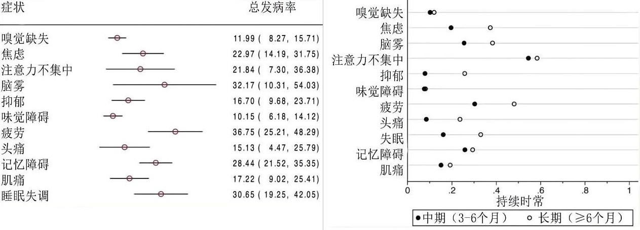 | 包括脑雾在内的多种神经系统后遗症的发病率和持续时长 |