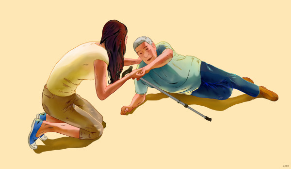 另外,子女应定期检查老人经常走动的地方是否有散落的电线等障碍物,及时清除隐患,保证室内摆设井然有序。对需要使用轮椅、视力欠佳、腿脚不灵便的老人来说,门槛会给其生活带来不便,甚 至会成为绊倒老人的罪魁祸首。家有老人最好别设门槛,如果家里带楼梯,最好加装防滑板。可在过道处适当安装扶手,便于老人在室内活动,并在淋浴和坐便器旁安装扶手,防止地滑导致老人摔倒。老人最好不要用丝缎类等光滑材质的被子和被单,以免上下床时不小心踩到滑倒,可换成防滑的毛料或棉质寝具。老人睡觉时最好关上床头灯,可在卧室墙角和走廊通往厕所的地方放个小夜灯,方便起夜。最后需要提醒子女及照护者,每年应定期带老人做视力和全身检查,如果血压太低或心律不齐,都可能诱发摔倒。老人身体条件允许的情况下,日常可进行平衡训练,既可保存骨量,还能强健肌肉,加强平衡感和协调能力。
