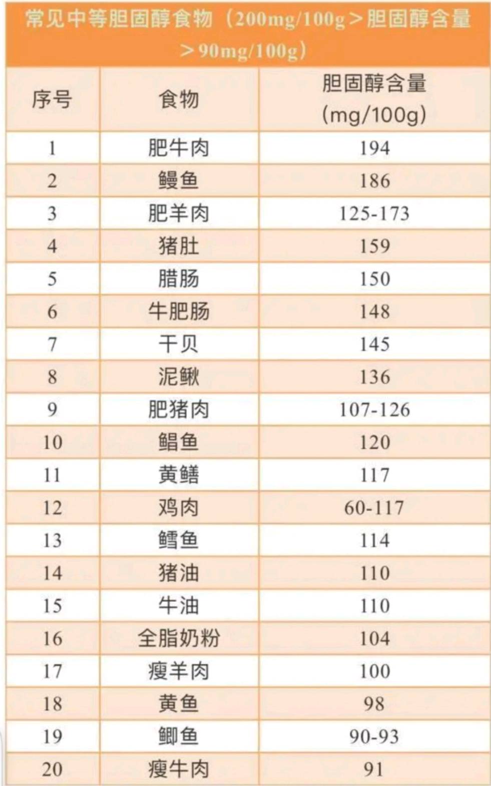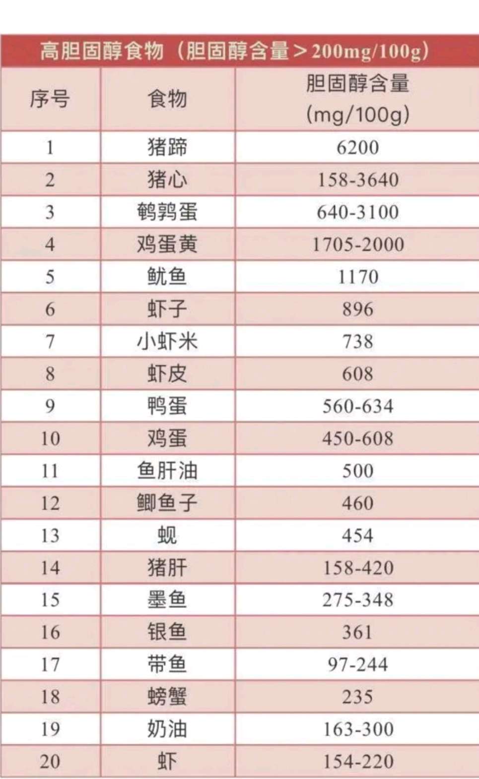 收好这份“胆固醇含量一览表”,尽量不给血管添堵