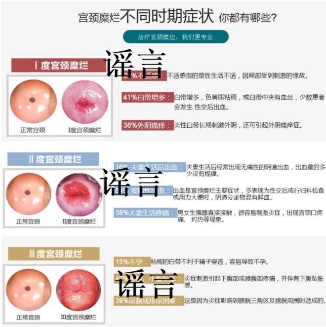 直至今日,在浏览器输入“宫颈糜烂”后,还会跳出来“治疗效果备受赞誉”的 图文并茂的链接,图片旁边还有宫颈糜烂“I度、II度、III度”的不同症状。或许,不明真相的吃瓜群众按照自己的症状对比之后,真的去重金治疗“宫颈糜烂”,那就损失大了。