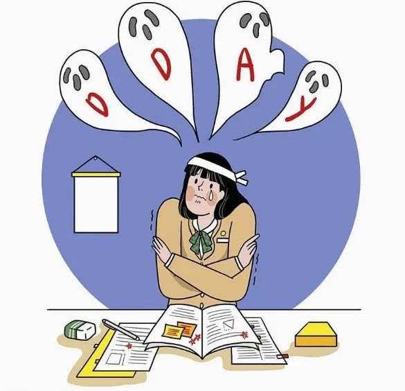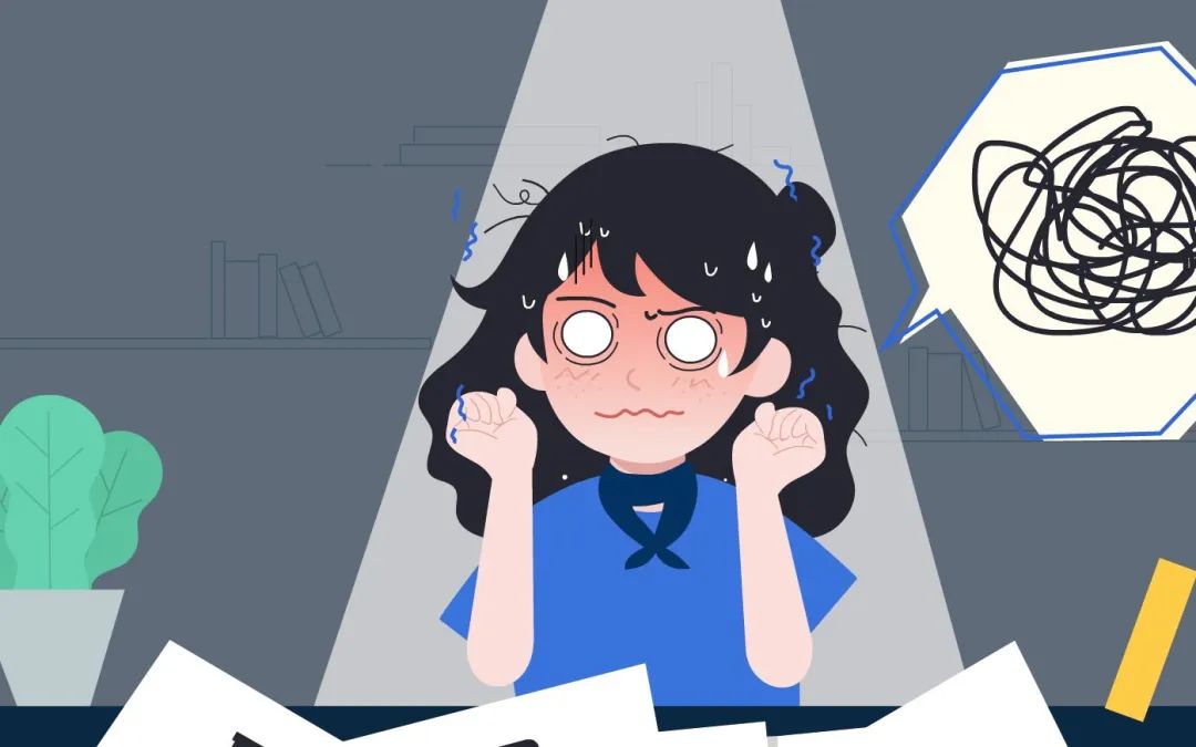 高度焦虑,也就是当面对即将考试的事实时,学生会表现出高强度的紧张和焦虑,甚至出现实实在在的身体反应,比如心率快速、血压升高,新陈代谢加快,口干舌燥、肌肉紧张、手心出汗,以及呼吸急促、恶心想吐,严重的还会出现颤抖。