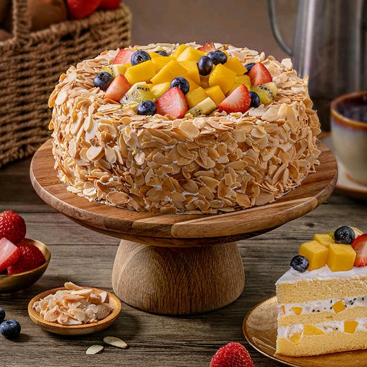 - 杏仁蛋糕:将杏仁粉和面粉混合,加入适量的水和糖,揉成面团,然后将其分成小块,压扁,加入适量的馅料,再将其压扁,放入烤箱中烤至金黄色即可。
