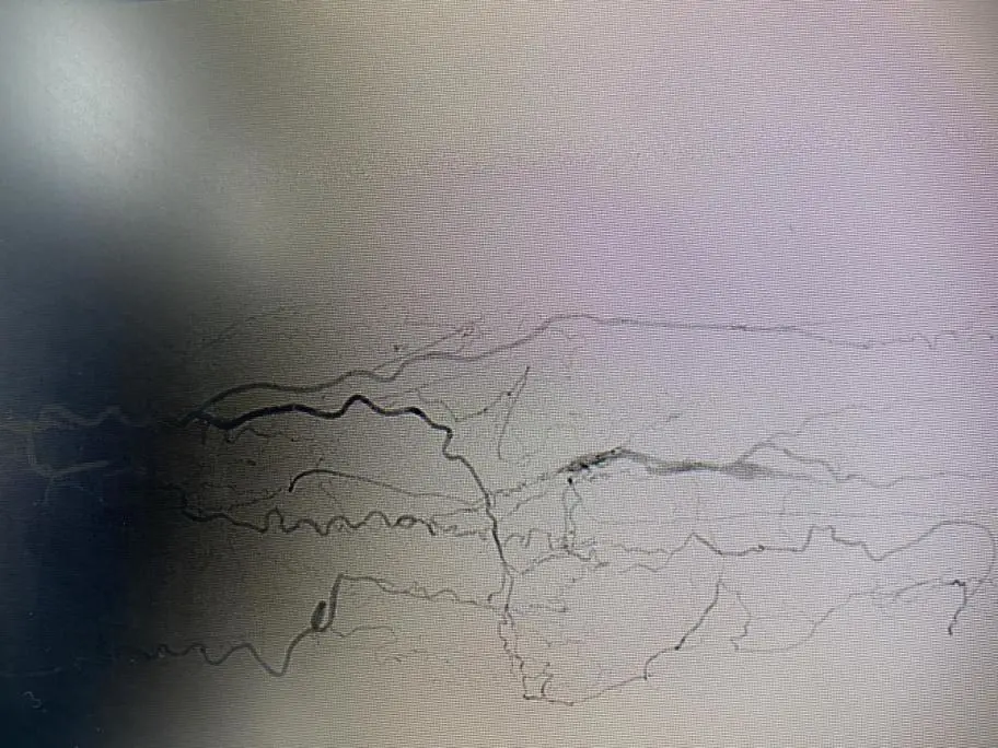 图示:术前,股浅动脉长段闭塞,局部可见侧支循环