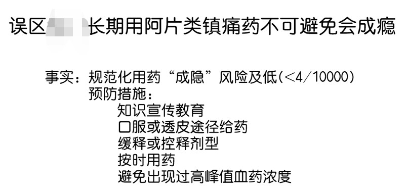 需要提醒大家的是,患者镇痛药物使用剂量增加,不一定代表有成瘾的倾向,绝大多数情况是病情进展或疼痛控制不足,或没有严格遵守医嘱合理用药造成的,即所谓的"伪成瘾"现象。