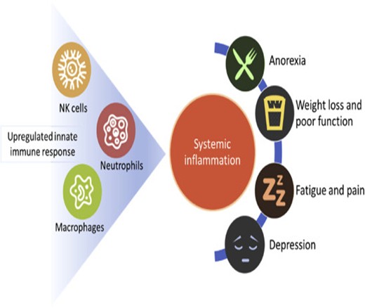 其中,最严重者是恶病质,特点为慢性、进行性的体重下降和骨骼肌消耗,机体内代谢严重紊乱,机体处于炎症状态,且对营养治疗不敏感或部分敏感,常伴有厌食症、饱腹感和乏力等,进一步可导致器官功能损害,是营养不良极为严重的表现。临床中需对营养不良尽早干预,在恶病质前期及恶病质期积极治疗。