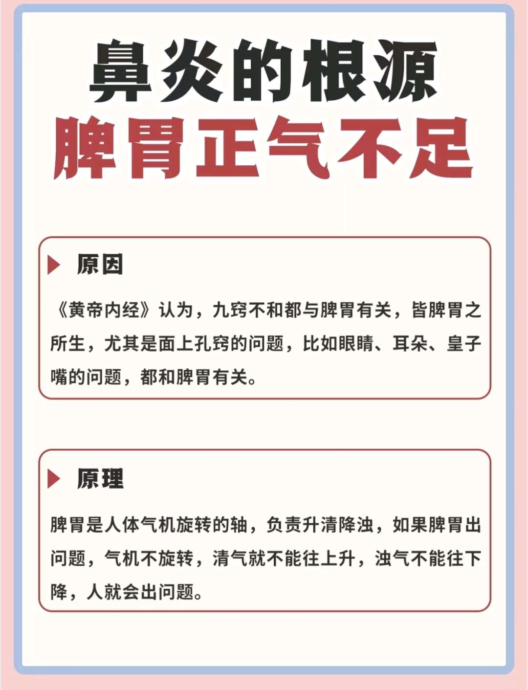 肺开窍于鼻,外合皮毛,正常肺气充足的情况下,当遇到冷空气,我们的毛孔会迅速闭合防止冷空气的侵袭。肺气不足的情况下,我们的腠理疏松,冷空气侵入体内,所以伴随着身体的保护性反应,通过打喷嚏、流鼻涕将寒气排出体外,通过鼻塞来阻挡鼻塞。