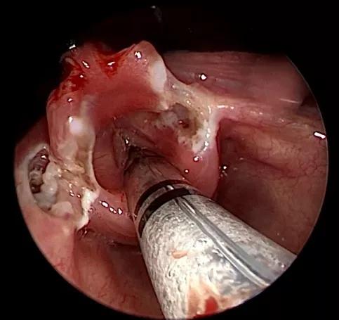 手术难度极高,颖颖是早产儿,手术时纠正月龄才一个月,喉部的空间极小,医生要利用低温等离子射频消融系统在喉显微镜下行声门上成型术,去除软化肥厚的粘膜,解除对气管的阻塞,帮孩子打通被堵塞的气道。