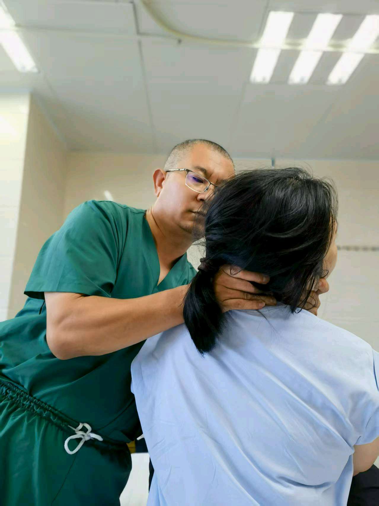 就在准备认命和流食锁死时,深圳市中医院一门诊骨伤科朱二山医生一句"要不试试正骨全家桶?"彻底改写剧本。只见他戴着金丝眼镜突然变身人体工程师,左手把着我后脖颈像在找蓝牙信号,右手对着颧骨咔咔一顿猛如虎的操作...