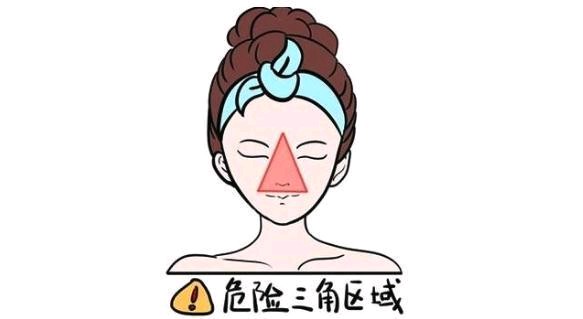 这个区域的痘痘要慎重下手,一旦有携带细菌的血液直接进入大脑,很容易诱发脑膜炎或脑脓肿!