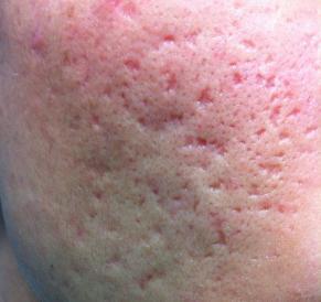 治疗:点阵激光、射频微针、自体脂肪填充、皮下分离、富血小板血浆、化学剥脱、磨削术、环钻术。