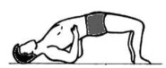二、仰卧位,两膝屈曲,双足踩于床面,吸气时挺胸挺腰,使臀部离开床面,呼气复原。