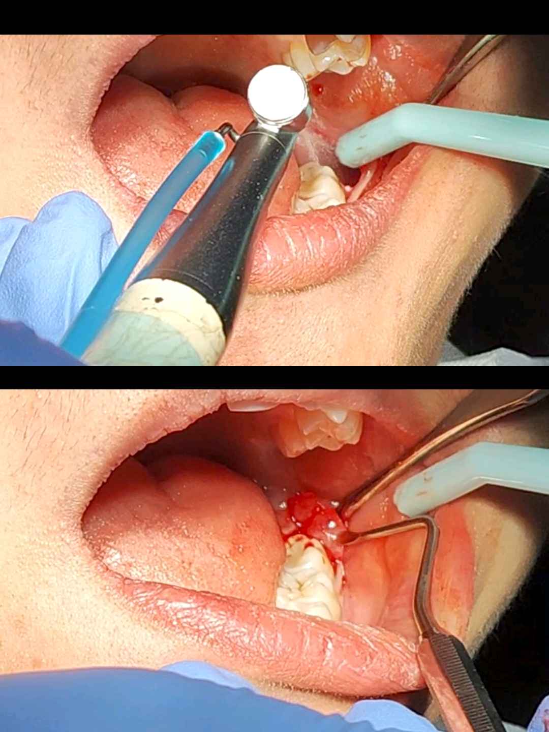 (将炎症组织以及牙囊刮除,冲洗干净创口)