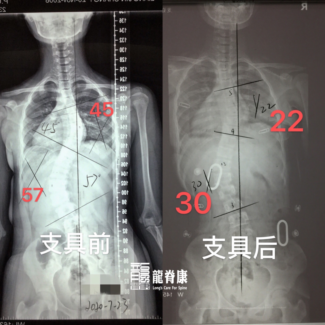2、20°到45°的脊柱侧弯患者,会建议其到院外定制支具固定,定期复查,如果不能阻止侧弯加重,再考虑手术治疗;