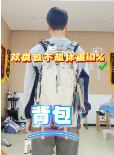 背包重量:背包重量不宜超过自身体重的10%,过重会增加脊柱负担。