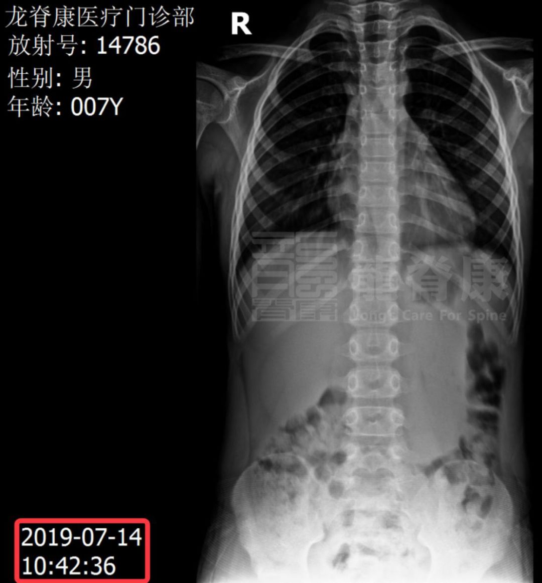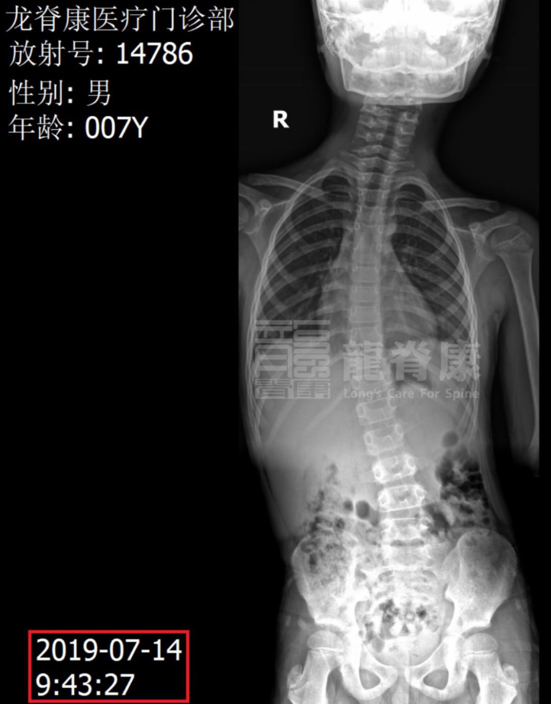 7岁的山东男孩,4年前就发现了体态不佳,妈妈最近带他过来龙脊康做脊柱侧弯筛查,全脊柱检查后发现侧弯28°,但1小时后,脊柱却变直,恢复正常,这期间发生了什么?