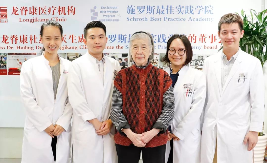 龙氏治脊疗法创始人龙层花教授与龙脊康施罗斯团队杜惠玲主任、黎展文、冯丽盈、谢秋伟医生合影