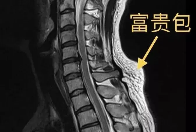 富贵包,指的是在后背上部颈胸交界处,也就是在第七颈椎和第一胸椎有凸出的硬包块。