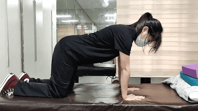 俯身跪在垫子上,腿成90度向天花板发力,保持腰部不要反弓。10个一组,重复3组。