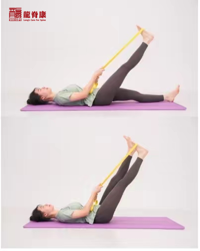 这个动作需要保持核心稳定,脊柱贴稳地面,左膝直膝上抬的状态下,做右腿的上抬与缓慢下落动作,这个动作可以锻炼到核心的稳定性,也可以锻炼到下肢后侧的灵活性。