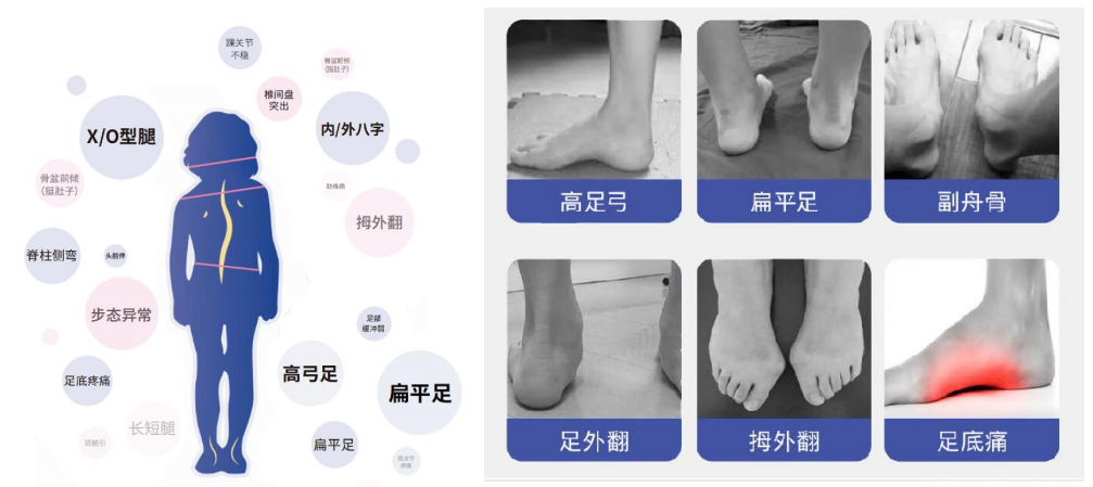足部是人体的基石,错误的步态会对足、踝、膝、骨盆、脊柱逐步产生深入的影响,在代偿的作用下,骨骼问题从足部向上延伸,造成骨骼畸变、关节位移等问题,可能产生严重且无法弥补的影响。