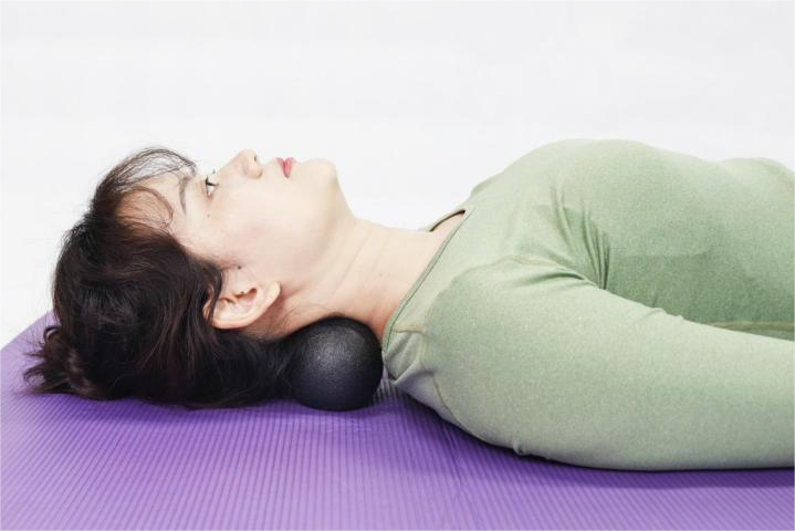 网球松解:仰卧,将网球置于枕骨下方,左右缓慢摇头2分钟,利用体重温和释放肌筋膜张力。